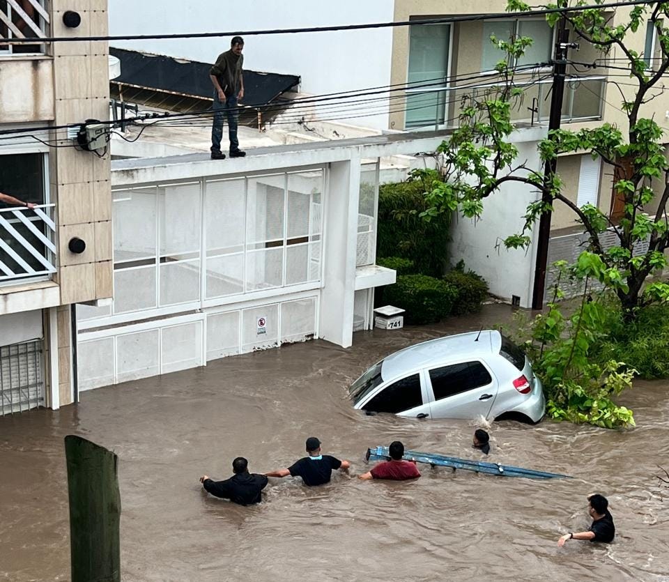 Desde Buenos Aires, yo veía en redes y TV lo que pasaba. La catástrofe televisada versus el silencio personal, interpersonal, familiar. Nadie atendía el celular. Las rutas de acceso cerradas.