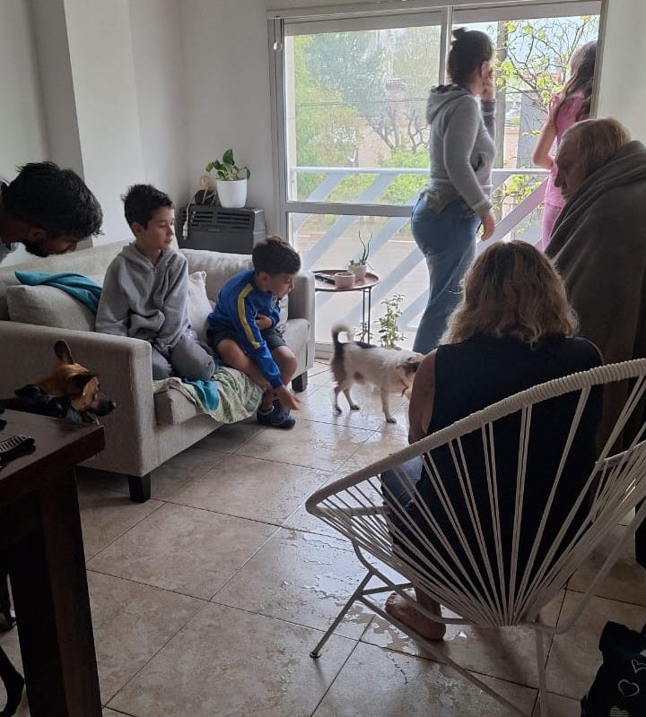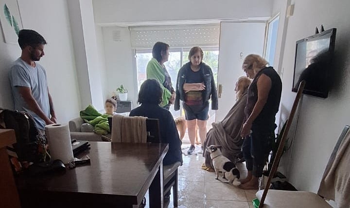 Empieza a llegar gente toda mojada, algunos vecinos conocidos, otros no, chicos que estaban rescatando gente. En un momento llega una señora grande, toda mojada, sólo con un bolsito en la mano que no soltaba por nada, que era la mamá de José, que vive a la derecha de mi departamento.
