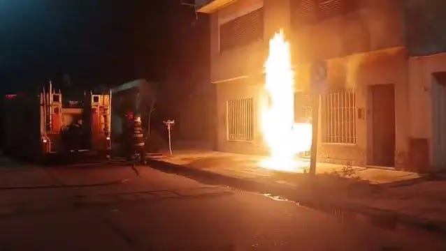 La empresa Camuzzi informó que el fuego se produjo como consecuencia del intento de robo de un flexible (caño de cobre que conecta el medidor con la instalación interna del hogar). Si detectás problemas con el gas, llamá al