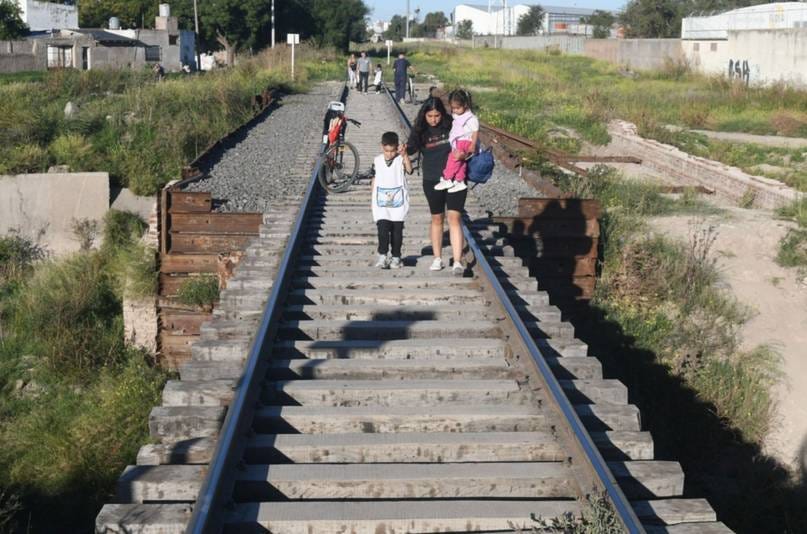 Vecinos se quejan por la clausura del paso peatonal sobre el puente Don Bosco, ya que para acceder a la Escuela N°55, el jardín de infantes y el club La Armonía se ven obligados a transitar por encima de las vías del ferrocarril, lo que resulta inseguro. (La Nueva.)