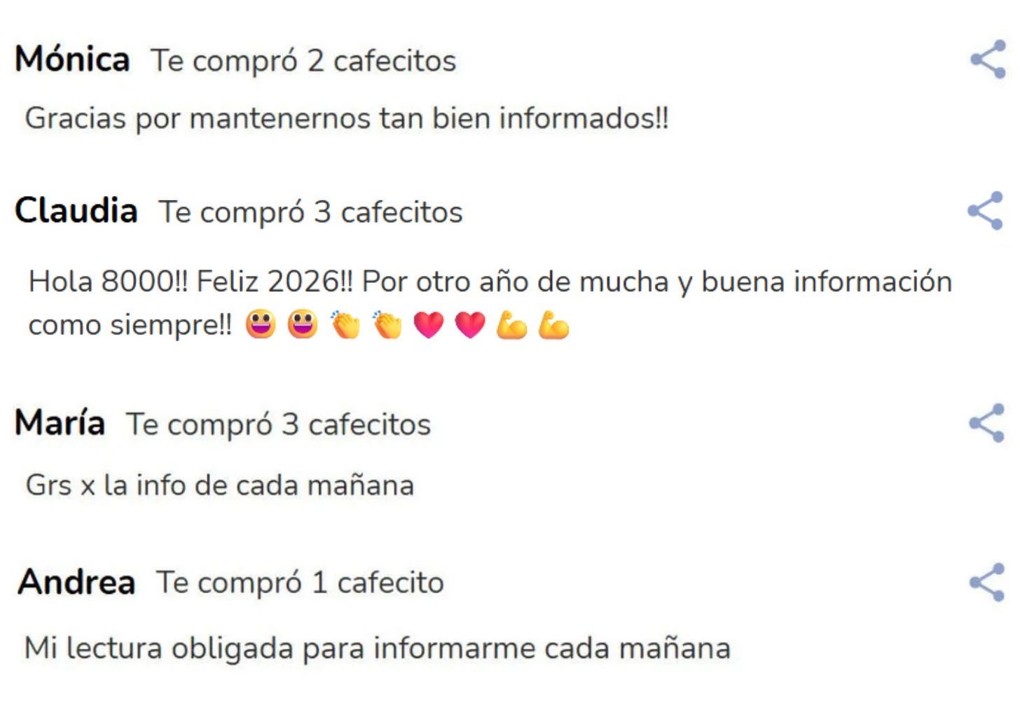 El aporte de los cafecitos y tus mensajes nos alientan muchísimo.