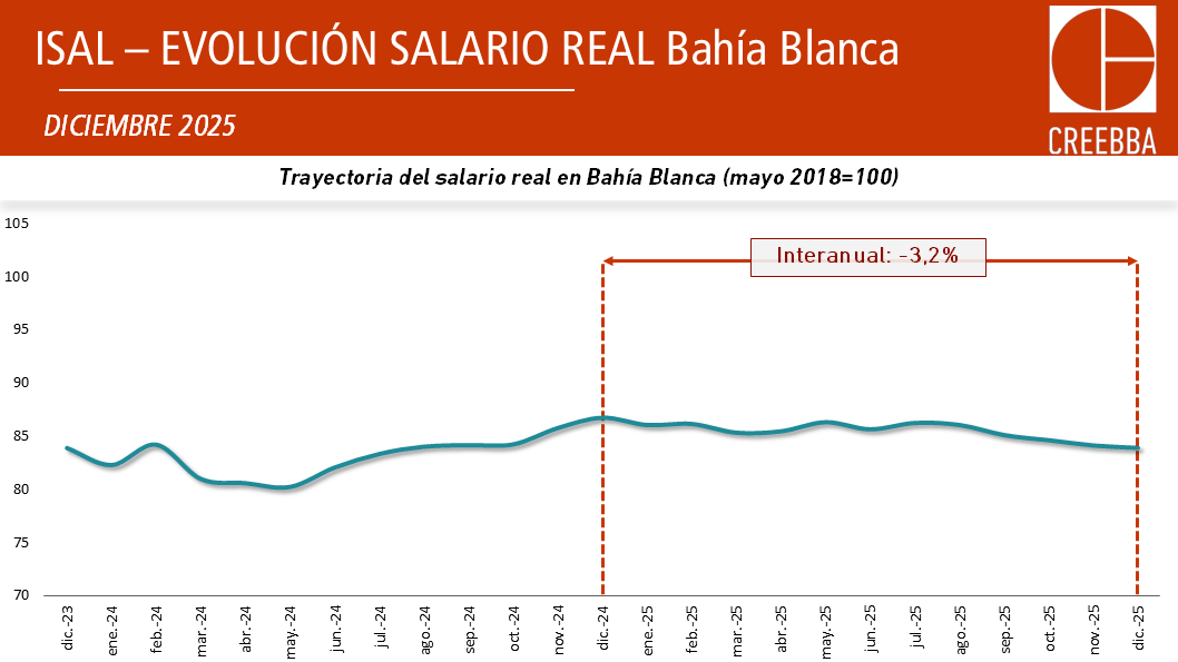 Fue la caída del poder adquisitivo en nuestra ciudad en diciembre de 2025, de acuerdo con el análisis de salarios del CREEBBA.