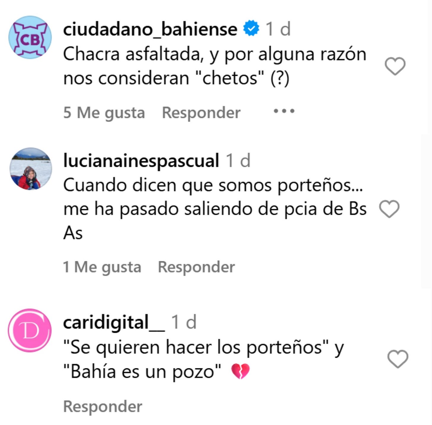 • Jorgelina nos comentó que la gente bahiense “caretea”.