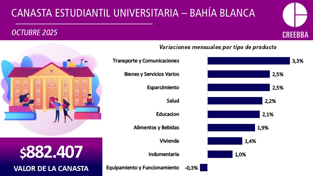 • El precio de la canasta estudiantil universitaria de octubre fue de $ 882.407, según detalló el CREEBBA.