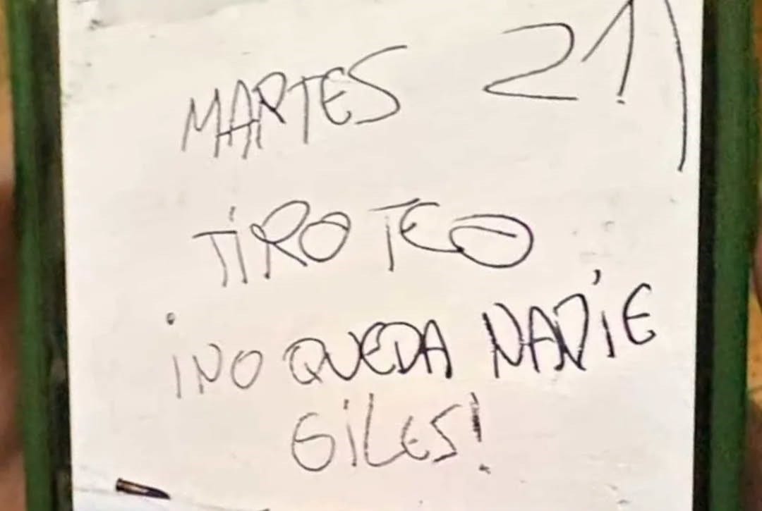 Apareció una nueva pintada con amenaza de tiroteo en el Colegio La Salle, ubicado en Beruti y España. El hallazgo se produjo en el baño del establecimiento, donde también se encontró un elemento similar a un proyectil de arma de fuego.