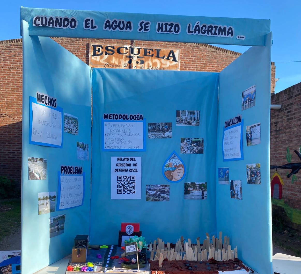 —Nos enfocamos en la percepción que tienen los alumnos de 5º (de primaria) acerca de cómo la inundación del 7 de marzo afectó sus emociones. No solamente a ellos, sino a todos los bahienses —le dijo a 8000 María José Cruz, docente de las áreas de Sociales y Naturales de la escuela 75, sobre el proyecto que presentaron en la Feria de Ciencias con dibujos, folletos, noticias y más.