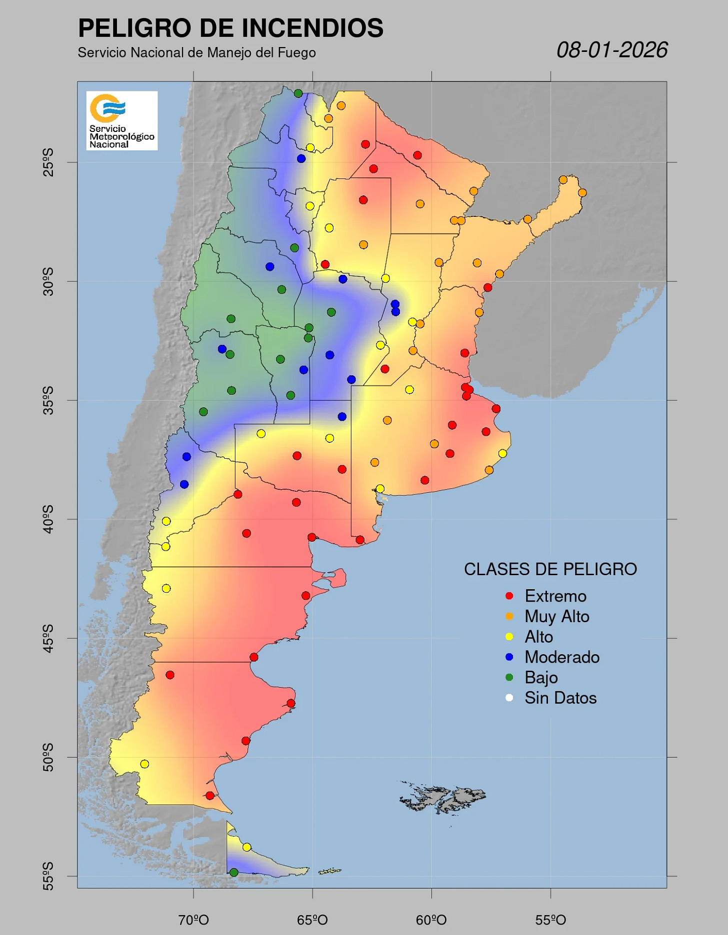Bahía y gran parte de la provincia se encuentran en alerta por peligro muy alto de incendios, al menos por los próximos 3 días, según el mapa difundido por el Servicio Nacional de Manejo del Fuego y el Servicio Meteorológico Nacional.