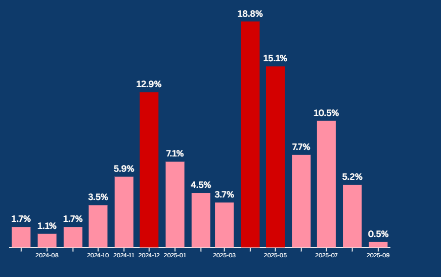 🐒 El término “mandril” se consolidó como eje del discurso agresivo, con 904 menciones y un crecimiento de casi el 200% entre 2024 y 2025. Además, su uso se amplificó un 89% a través de reposteos impulsados por redes coordinadas.