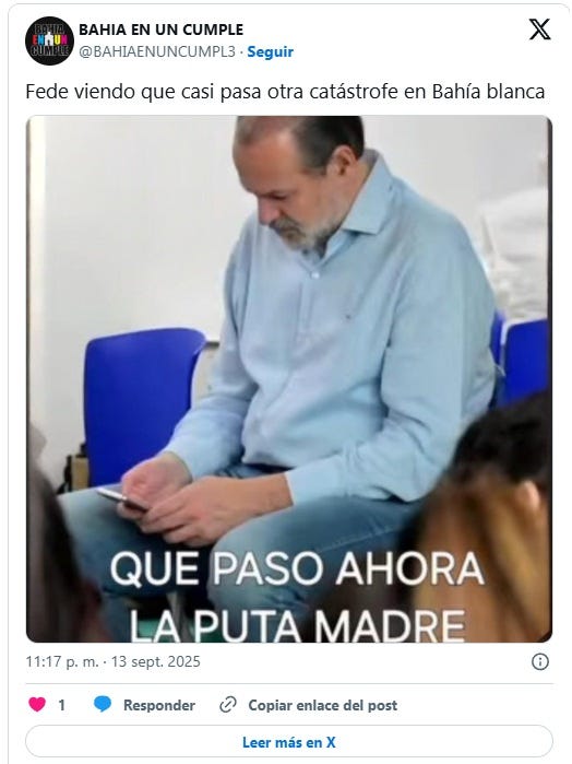 “En julio, se pagaron intereses de deuda pública por $ 17 billones. Significan 113 ayudas requeridas por Bahía Blanca para su reconstrucción”, cuestionó Álvaro Díaz, concejal de Fuerza Patria.