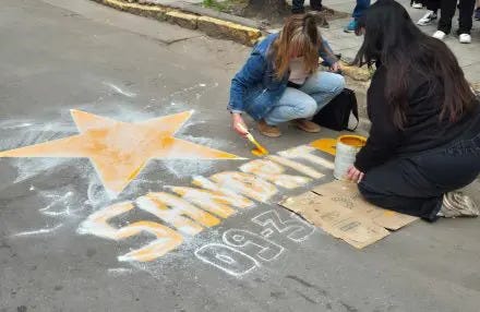 • Las hijas de Sandra Romero, quien falleció en 2023 tras ser atropellada por una camioneta conducida por Ángela Leguizamón, pintaron su estrella amarilla en el cruce de Colón y Drago. (Canal Siete)