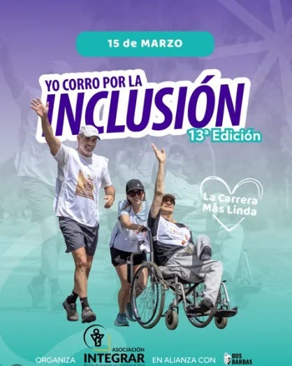 Es la edición que se realizará el 15 de marzo de la prueba atlética “Yo corro por la inclusión”, organizada por Integrar, que ya tiene las inscripciones abiertas acá.