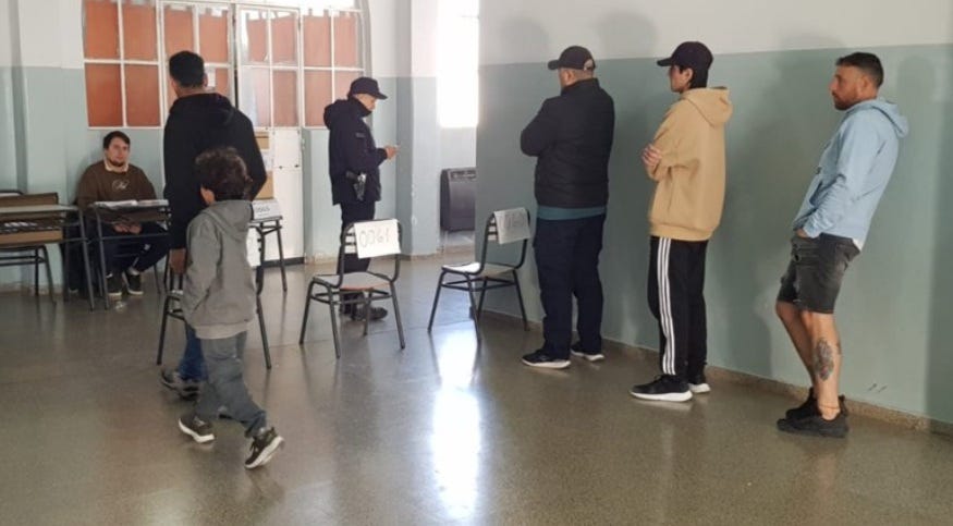 En cambio, en la escuela de Beruti al 400 se dio la situación inversa: las autoridades de mesa charlaron con Santiago, un pequeño que quiso acompañar a su papá.