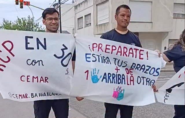 Son los segundos que les lleva a los conductores aprender maniobras de reanimación cardiopulmonar (RCP) mientras esperan el semáforo en avenida Alem, gracias a una iniciativa de los brigadistas de CEMAR.