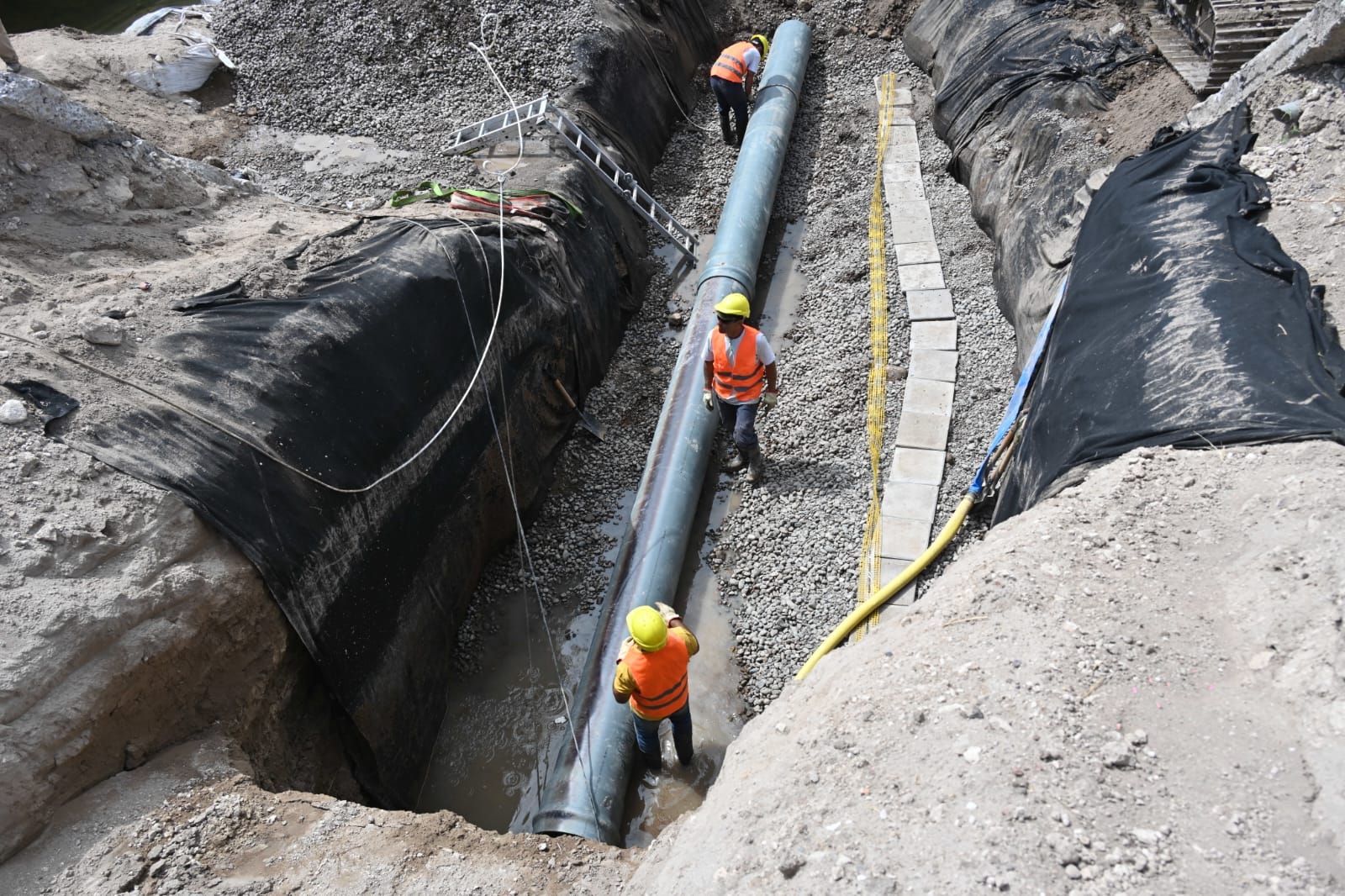 Reconstrucción del canal Maldonado: el Municipio informó que se colocaron caños camisa para la relocalización provisoria de servicios en los puentes de Don Bosco y Pampa Central.