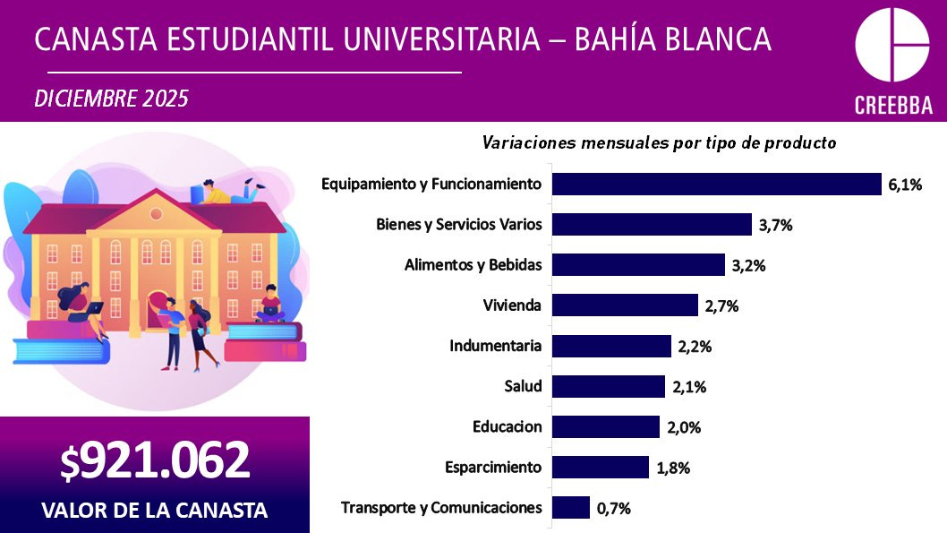 El objetivo de esta canasta es medir el costo total mensual de vivir en Bahía y estudiar en la Universidad Nacional del Sur (UNS) para un estudiante de la región.