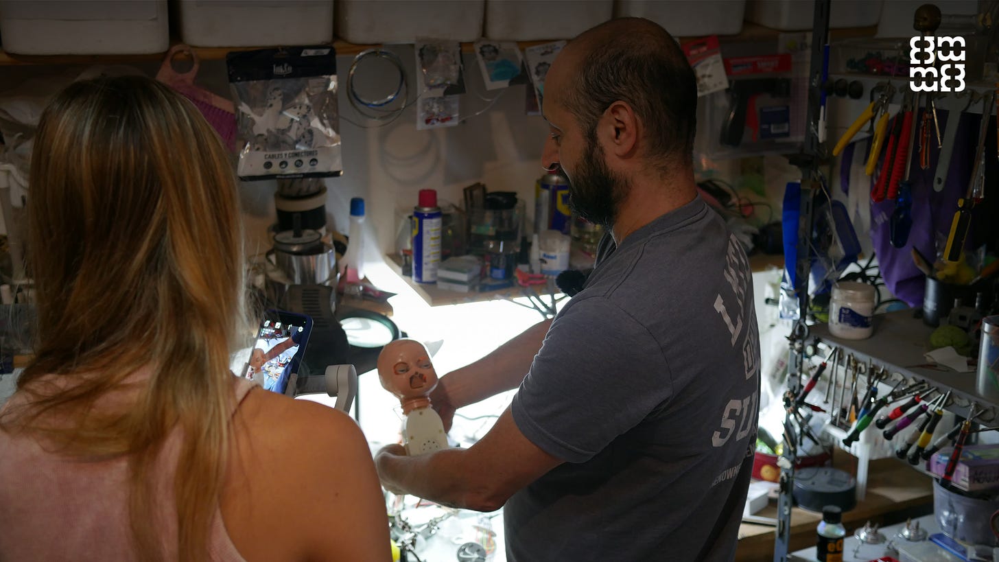 —Fui DJ durante unos 20 años y tenía que arreglar sistemas de iluminación y sonido sin saber electrónica: era prueba y error. Muchas veces los aparatos se rompían, pero quedaban partes que me resultaban interesantes. Además, cuando mi hija Isabella era chica, tenía muñecos animatrónicos (los que funcionan con pilas y se mueven). Un día se rompió uno, lo desarmamos y vimos que adentro había “monstruos”. Ahí empezamos a mezclar esos mecanismos con piezas que yo guardaba y cosas que veía en internet, y me fascinó.